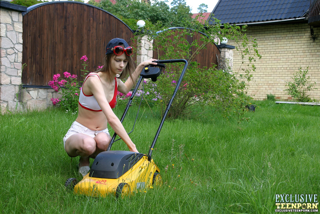 Фотосет Ей снова пришлось косить газон, так почему бы не сделать это немного интересным. Ну, так как дома никого не было, она разделась и решила почувствовать себя хорошо. Вы увидите ее голой, когда она сидит на улице и пассивно мастурбирует для вас в категории: