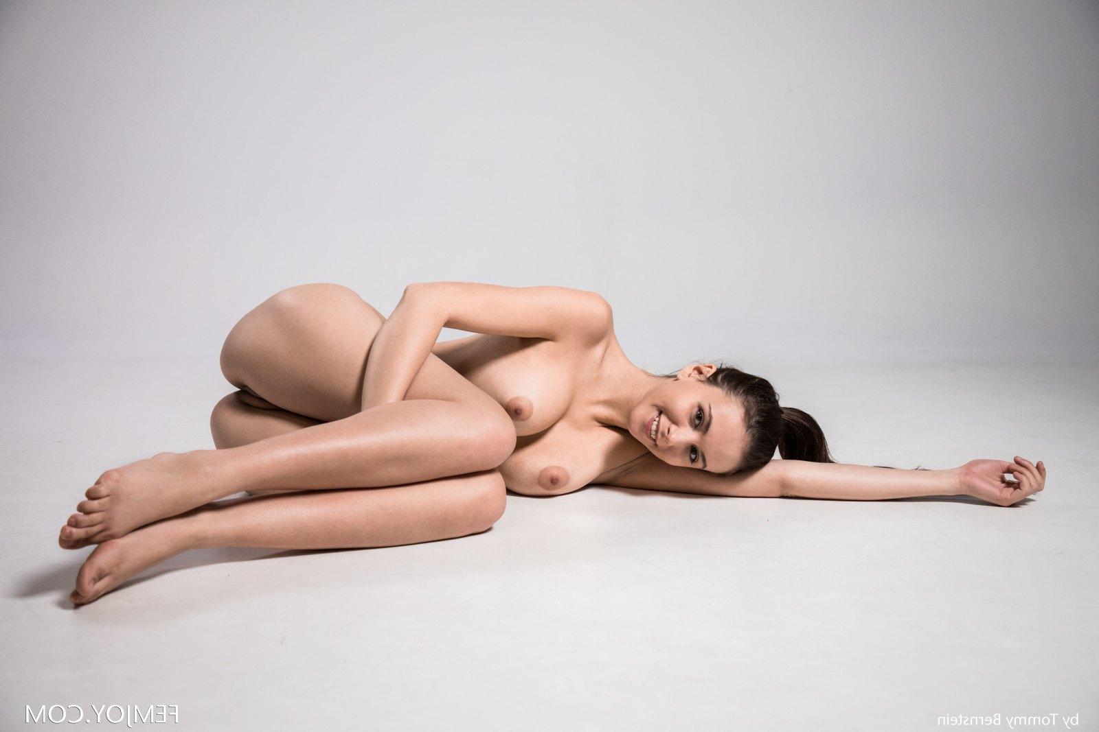 Фотосет Милая и очаровательная телка ошеломляет нас своими сексуальными ножками и бритой киской в различных индивидуальных позах в категории: