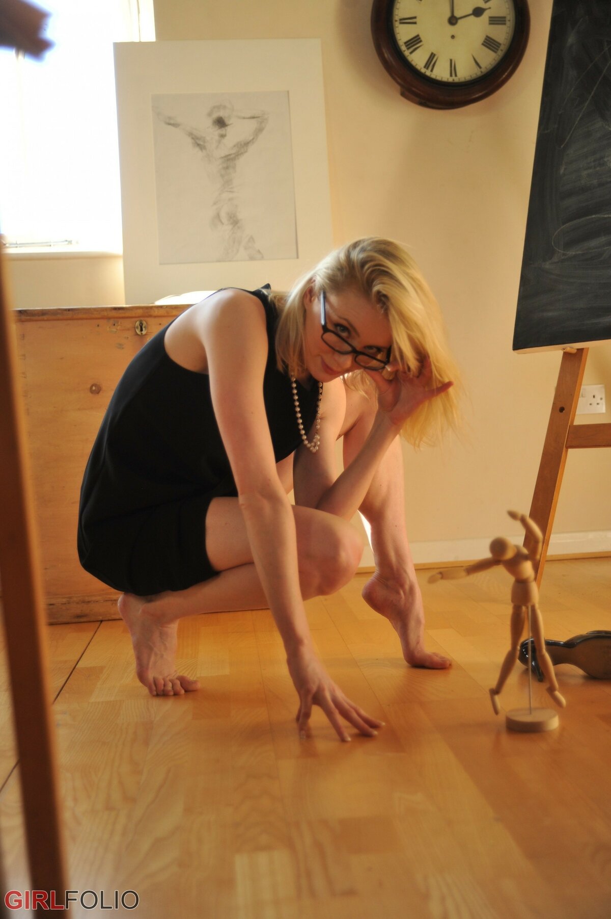 Фотосет Непослушная блондинка-учительница раздевается во время своих частных уроков в категории: